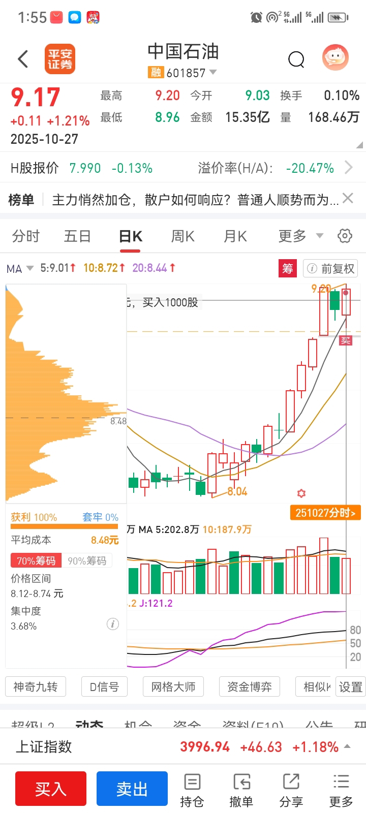 $中国石油(SH601857)$ 这个票再涨二十个点没问题吧,先搞一万,每涨两个点加一万,加到十万盈利一万二,再回收本钱,盈利就不再管了。