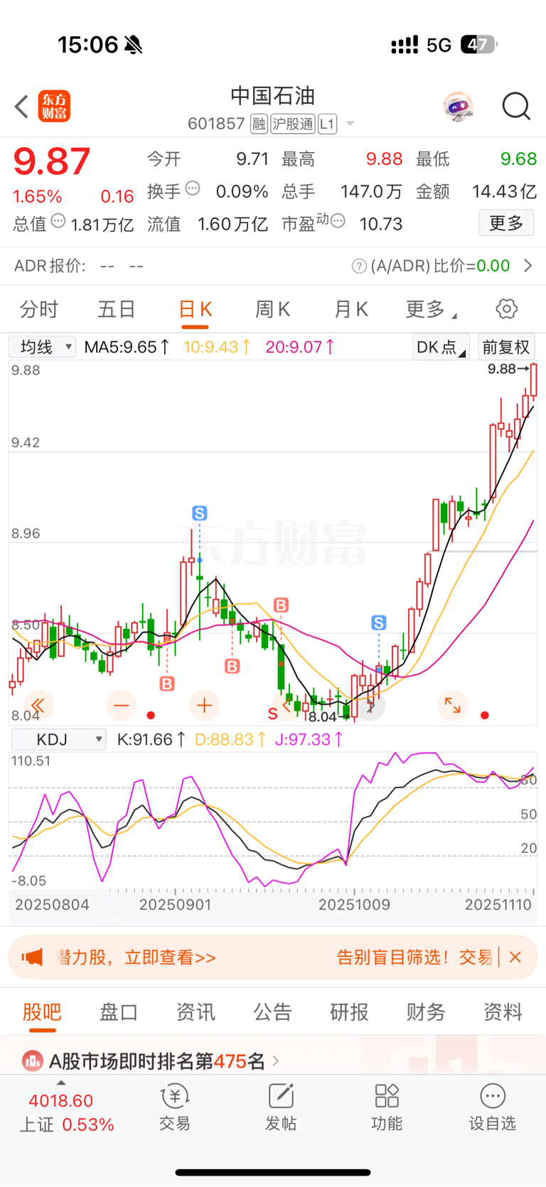 $中国石油(SH601857)$ 还好我卖了,不然它都不带涨