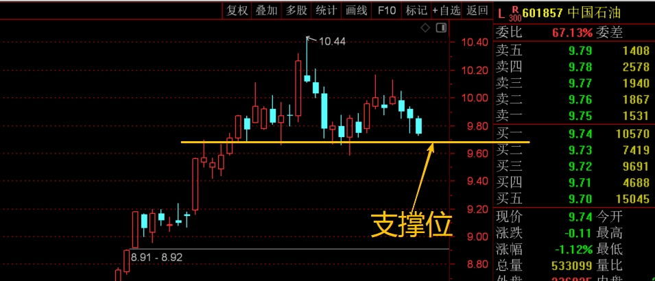 $中国石油(SH601857)$ 前两周冲高后回落下来,近期主要是做个调整的趋势,短线这里主要是套横线位置的支撑情况,能稳住问题不大,继续震荡看涨,但有效跌破就要注意回落风险了,需要控制仓位应对。#复盘记录# #炒股日记#