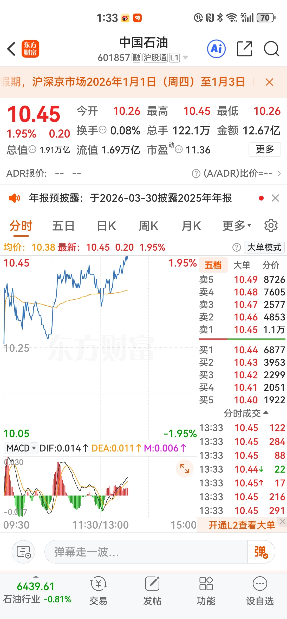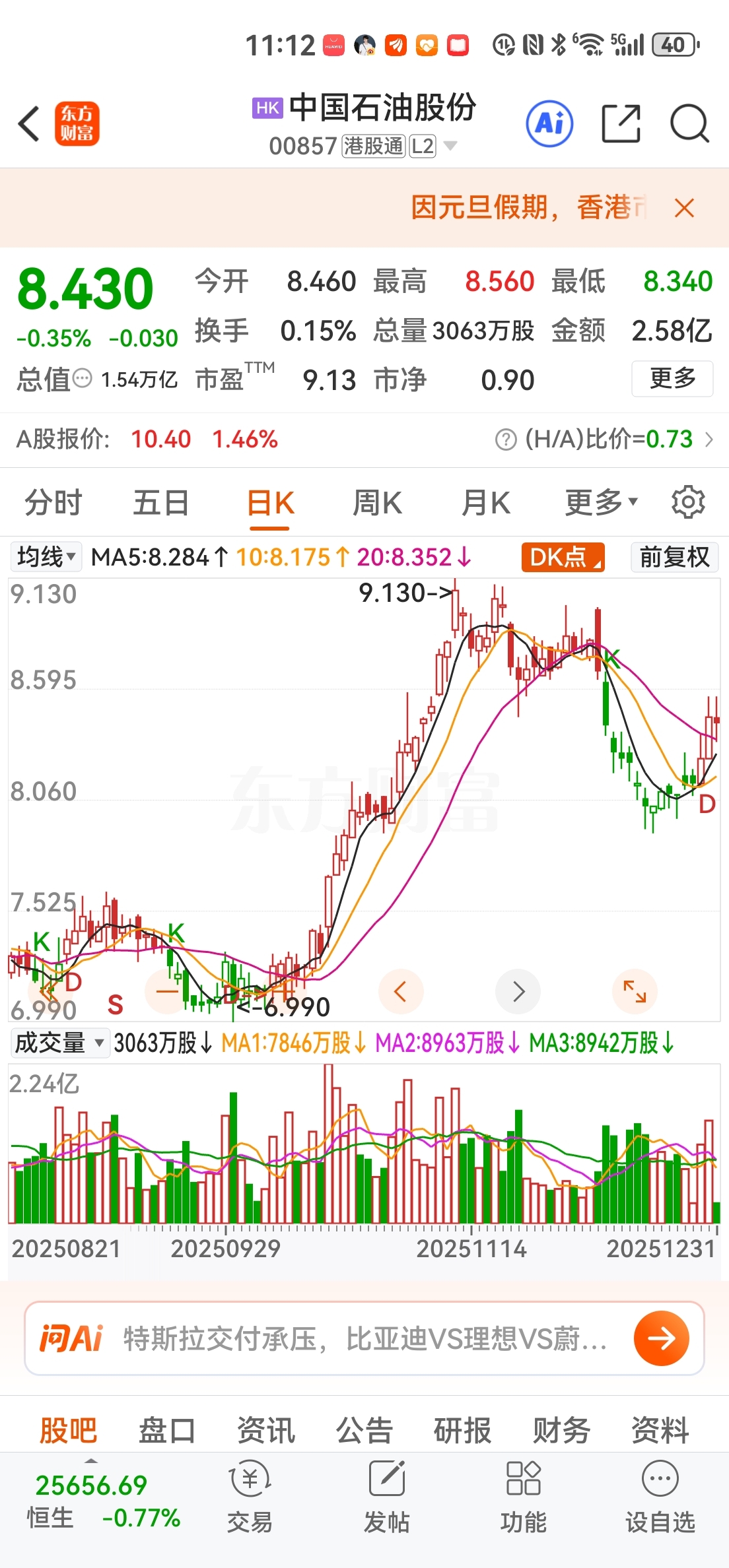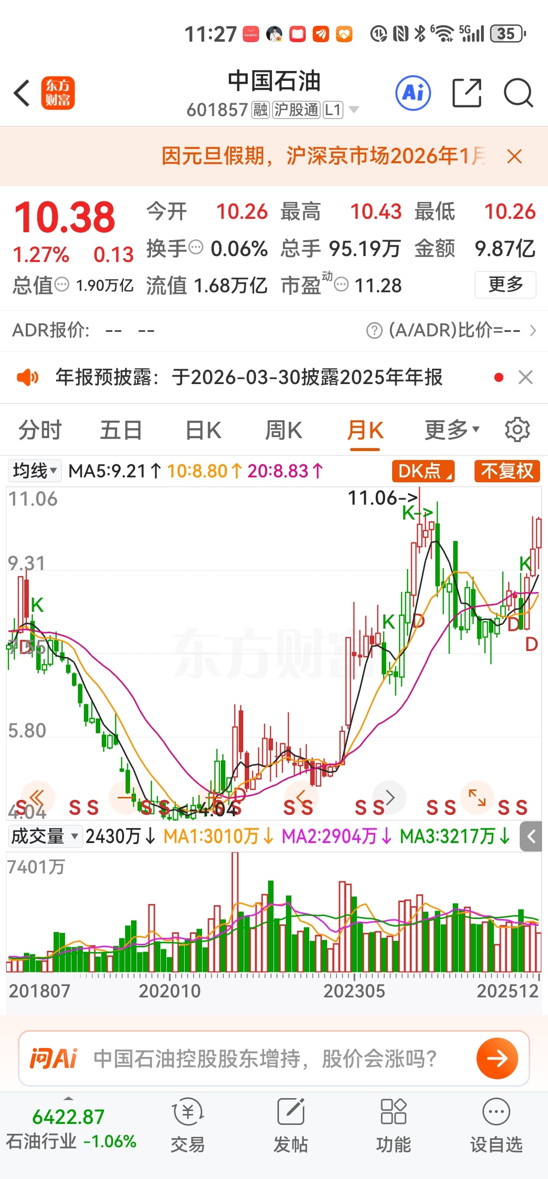 中石油会突破10.44创新高吗?这段时间,A比H强