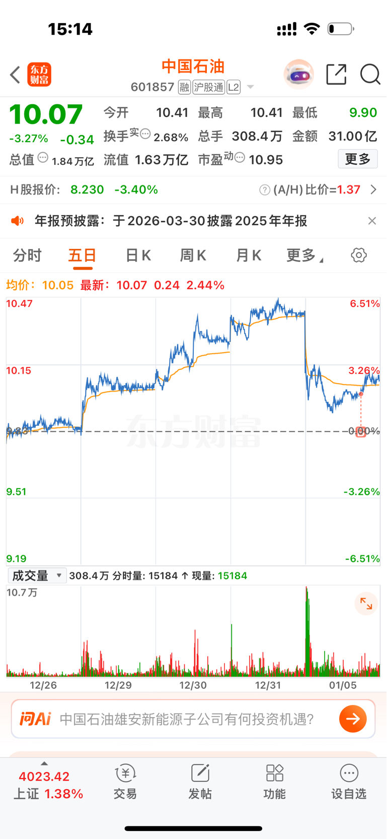 $中国石油(SH601857)$ 跌了不买难道涨了买