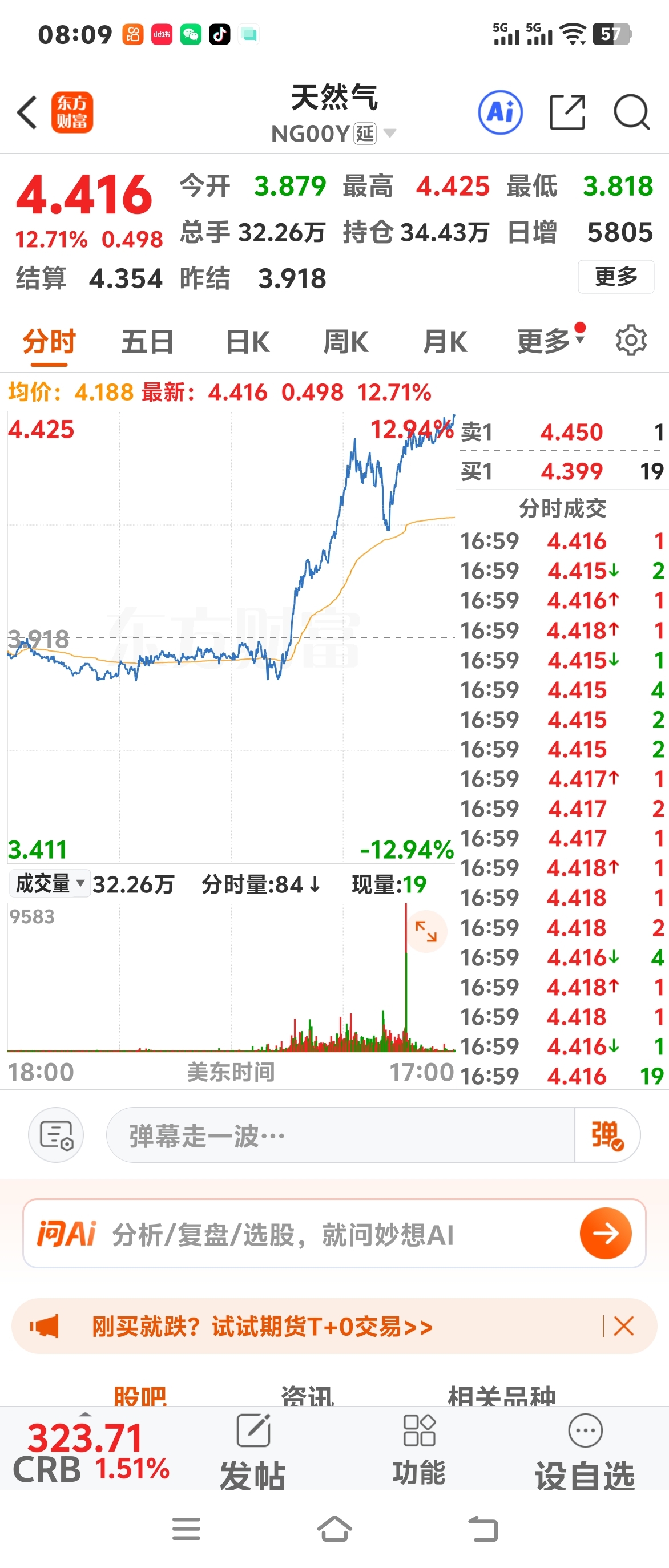 早上醒来一看,夜盘天然气期货竟然暴涨12%以上,在所有贵金属和有色期货大跌的情况