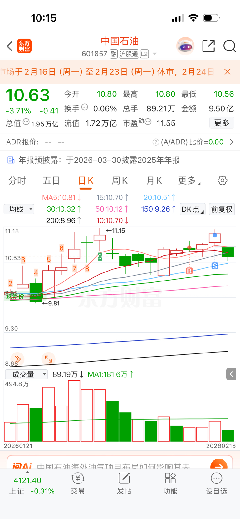 $中国石油(SH601857)$ 昨天就说了要回调