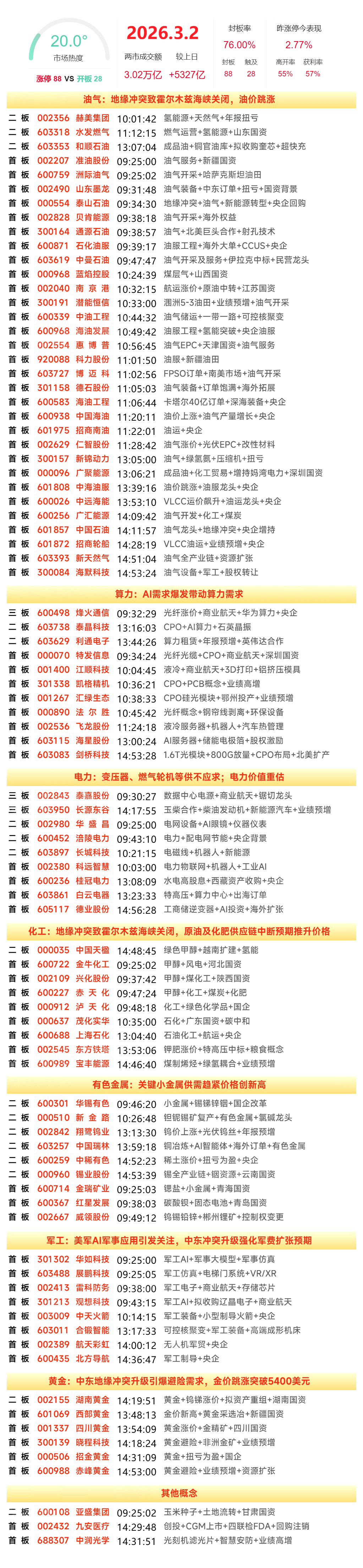 3月2日涨停复盘