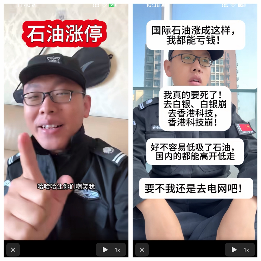 小张的保安今天又亏懵逼了。本来以为油价期货突发大涨20%,手里的股票可以大涨。结果今天开盘都是高开低走,亏得不要不要的。期货涨未必股价就会大涨,小张叫他好好做保安他不听。股市里的钱不是这么好赚到,他从白银,恒生科技,石油换来换去不断的去追逐热点,结果处处被套;其实他的遭遇就是很多新股民的真实写照。妄想通过不断追逐市场热点去获得最大收益,结果是换的越勤快亏越惨。
