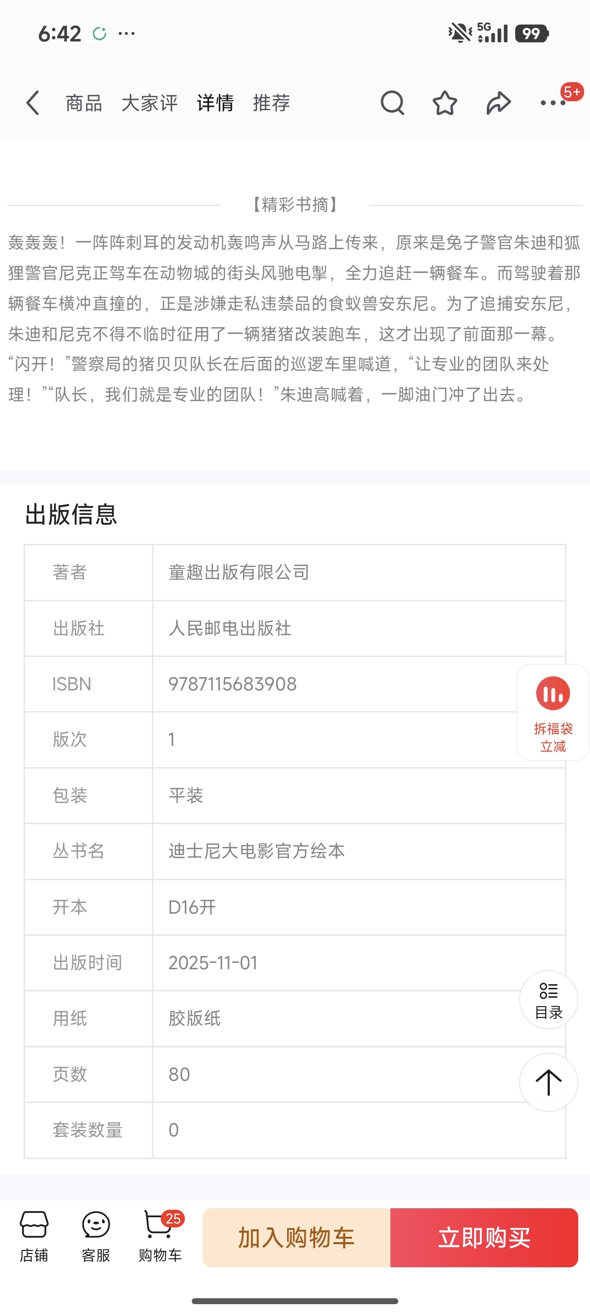 疯狂动物城2官方绘本,迪士尼正版授权。被授权方:童趣出版有限公司。该公司大股东是人民邮电出版社。