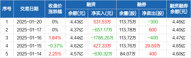 紫金银行:融资净买入531.53万元,融资余额4.43亿元(01-20)