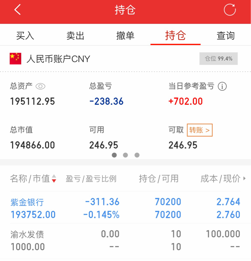 $紫金银行(SH601860)$ 现在股票都懒得看,收盘看一看,都不知道这2天开盘,已经麻木了,爱涨爱跌随便了,6月份分完红再说吧。这票子没题材没业绩,就跟现在的日子一样,扔里面躺平完事,打打游戏混日子。