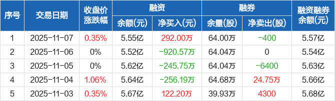 紫金银行:融资净买入292万元,融资余额5.55亿元(11-07)