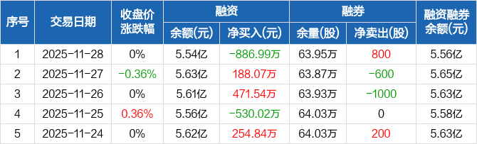 紫金银行:融资净偿还886.99万元,融资余额5.54亿元(11-28)