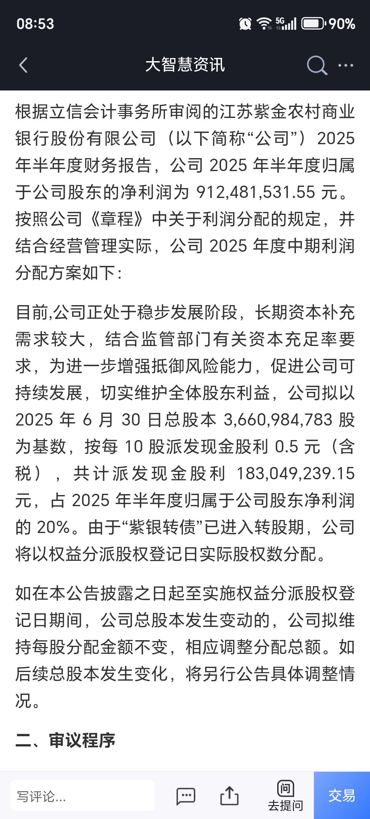 $紫金银行(SH601860)$ 紫金很缺钱啊,百分之20分红,分红多少先确定,但是转股价是3.65,现在价是2.77,谁会转股呢,又要引入大机构,在下面亏钱买,江阴银行,有江南水务110买入,转股,紫金又有谁会干这啥事呢,