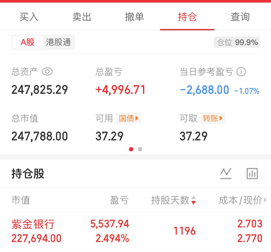 $紫金银行(SH601860)$ 哎呦呦,能涨能跌3分钱了!2月分红后,没几个月又得分红了!等着吧,大盘4000多点出去容易挨打,不如在这里吃姑息!5个月8000多!不知道能不能跌倒2.58或者2.40附近了,马上发钱了准备再买点!