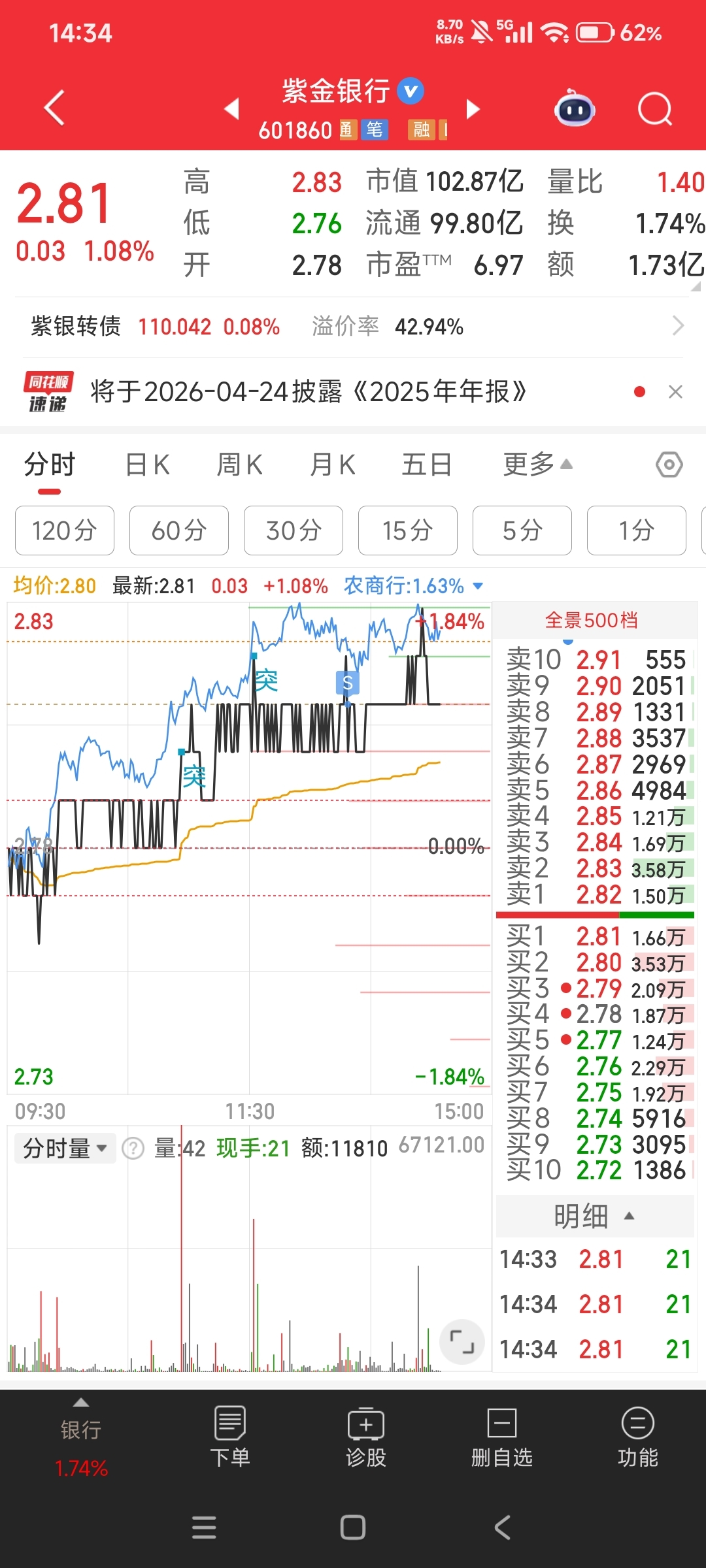 $紫金银行(SH601860)$ 底仓不动,剩下滚动做“T“,你有种再渣下来!