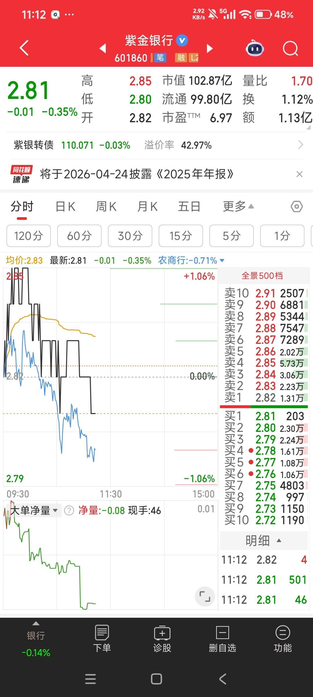 $紫金银行(SH601860)$ 底仓不动,剩下滚动做“T“,你有种再渣下来!