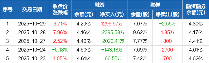 福莱特:融资净买入1296.97万元,融资余额4.29亿元(10-29)