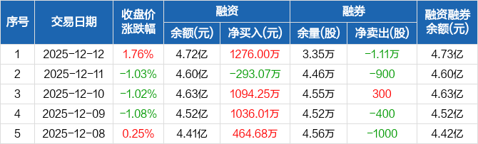 福莱特:融资净买入1276万元,融资余额4.72亿元(12-12)