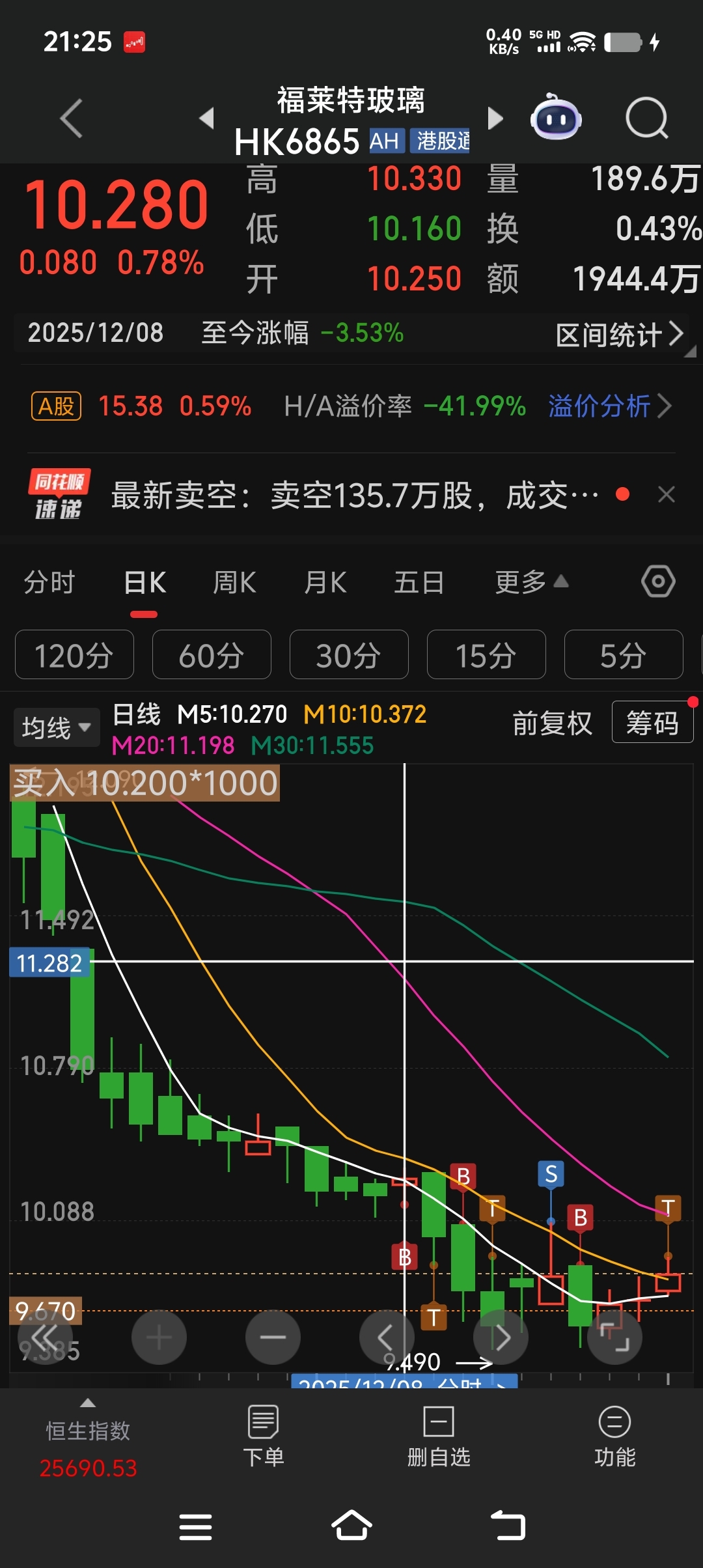 福菜特H股T+0操作空间大,买卖不限次数,每天近2个点波动