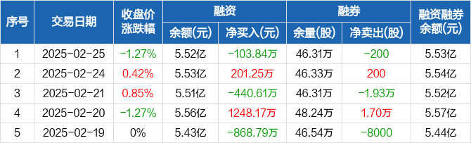 中远海发:融资净偿还103.84万元,融资余额5.52亿元(02-25)