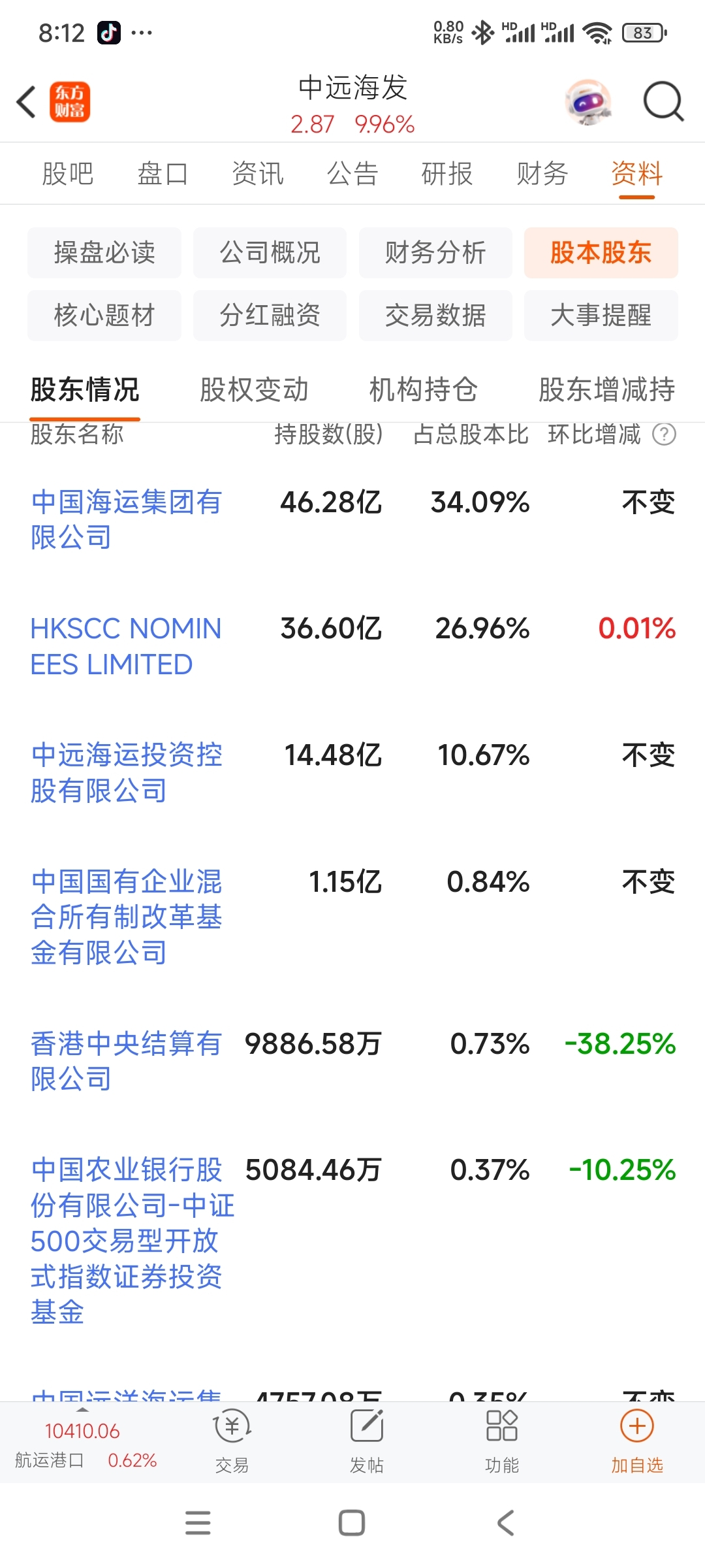 $中远海发(SH601866)$ 那个1.15亿股的股东就是今天龙虎榜的卖一,我算了一下,刚好对上了
