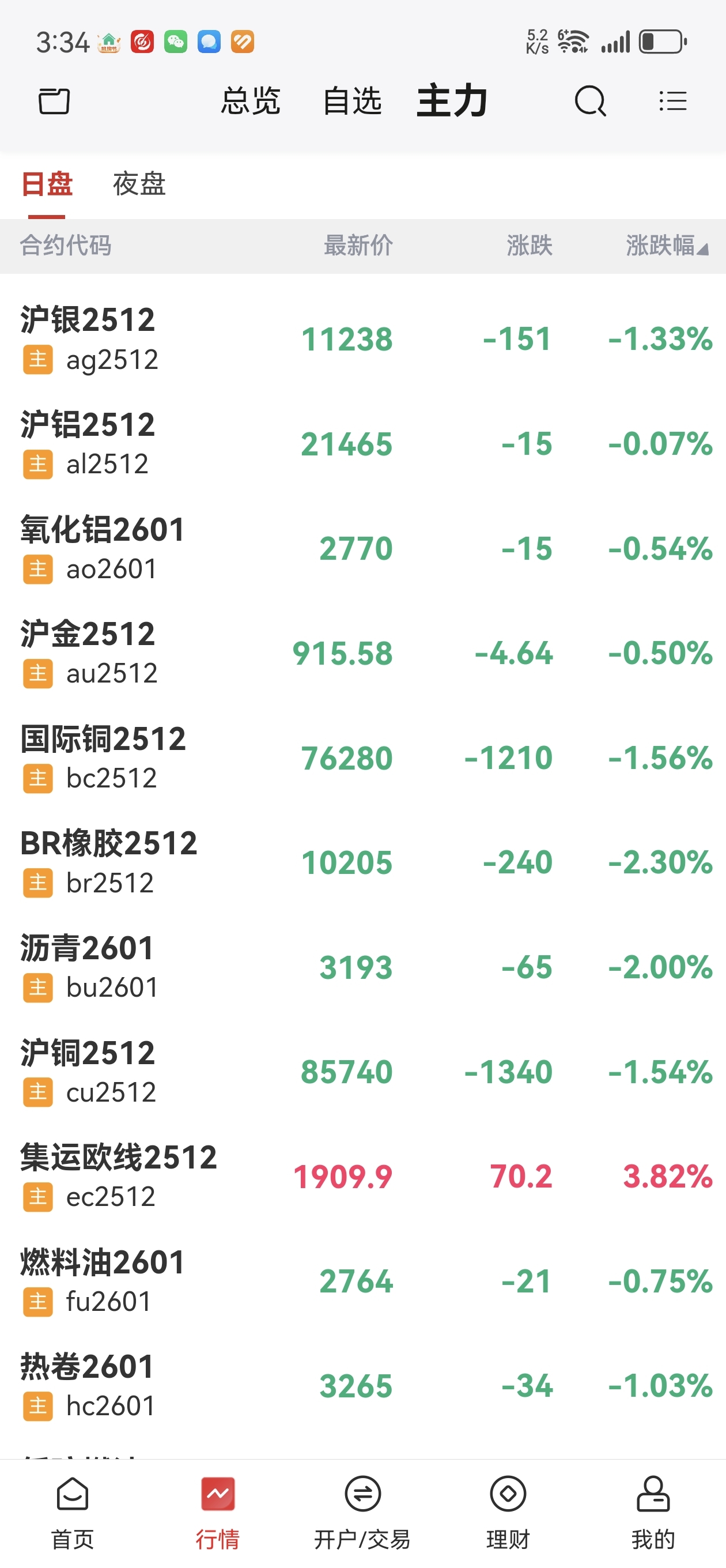 别的期货都跌,集运欧线大涨3.82%;明天看你了!