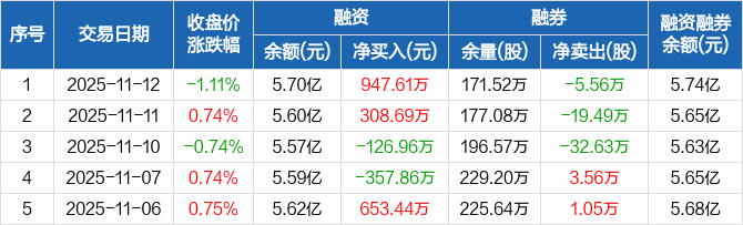 中远海发:融资净买入947.61万元,融资余额5.7亿元(11-12)