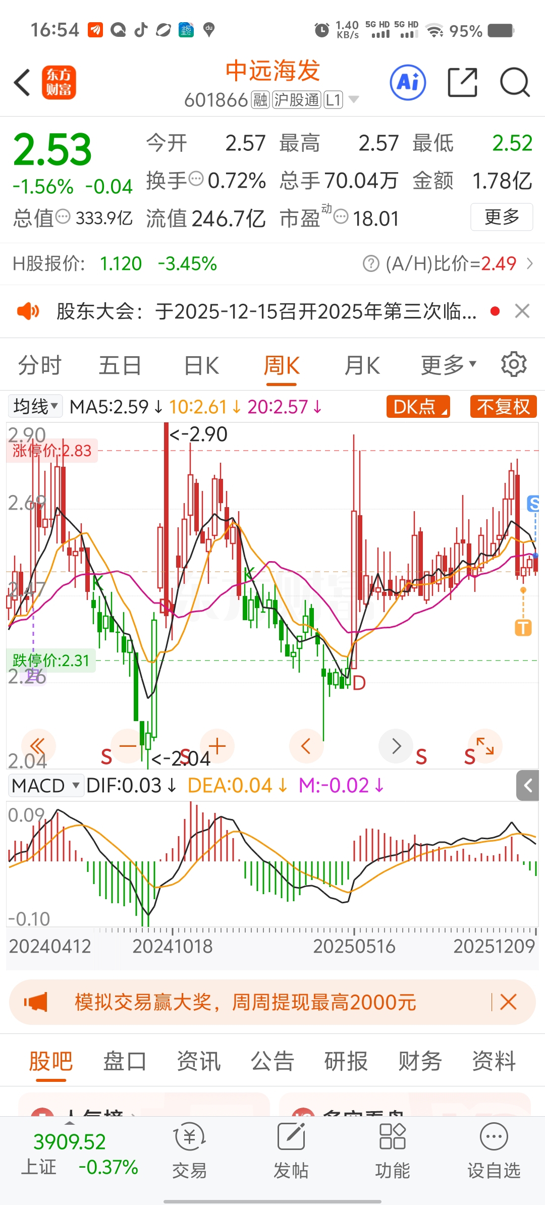 $中远海发(SH601866)$ 听劝,2.3以下再重仓……