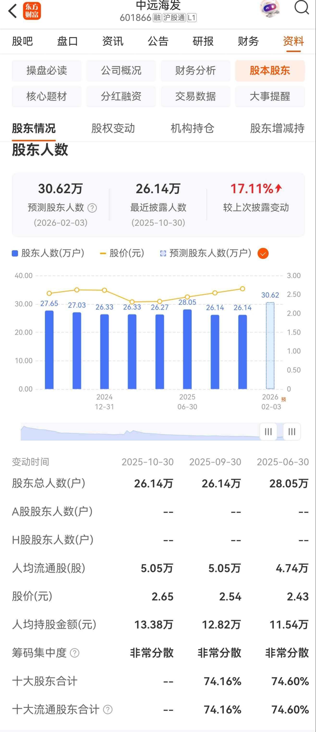 目前,中远海发A与H股比价约2.6倍。截止到2025年9月30月,中远海发A股股东26万余户,人均持股金额近13万元。按“二八法则”来盲估,约有至少万户持股在10万股以上,约有市值约30亿元。在互联互通的机制下,如果中远海发这部分A股股东“理性人”的全部来购买H股,会发生什么情况啊!?
