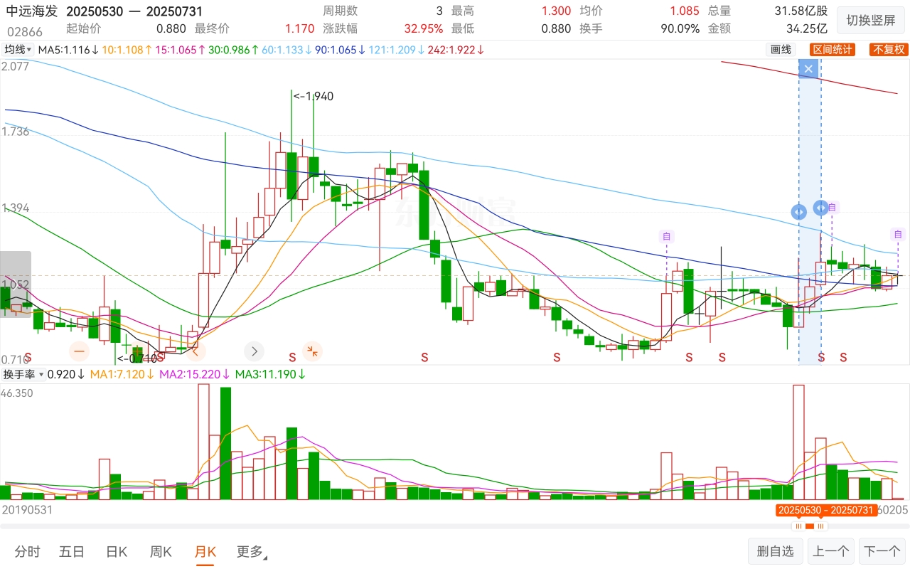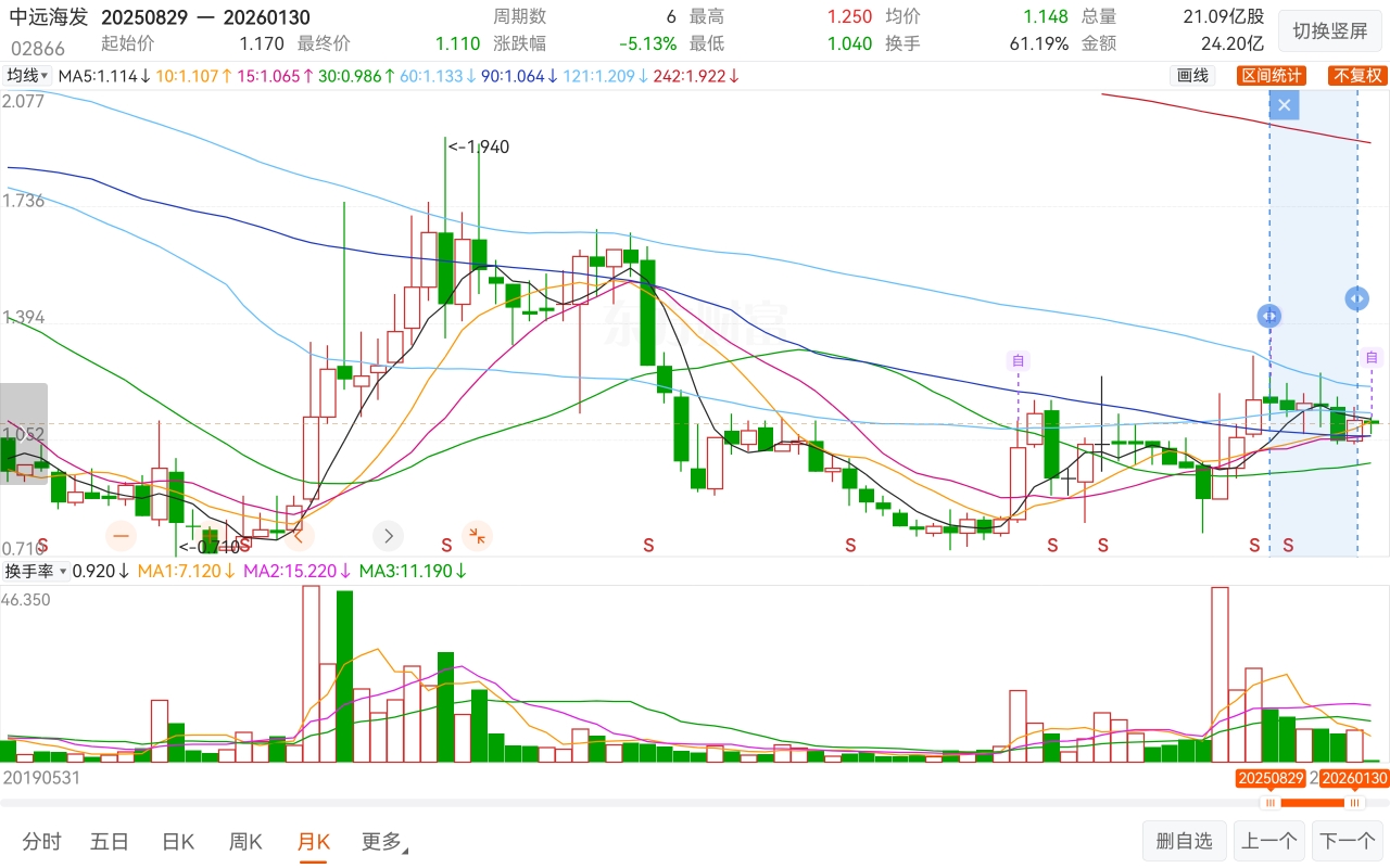 $中远海发(SH601866)$ $中远海发(HK|02866)$ $上证指数(SH000001)$