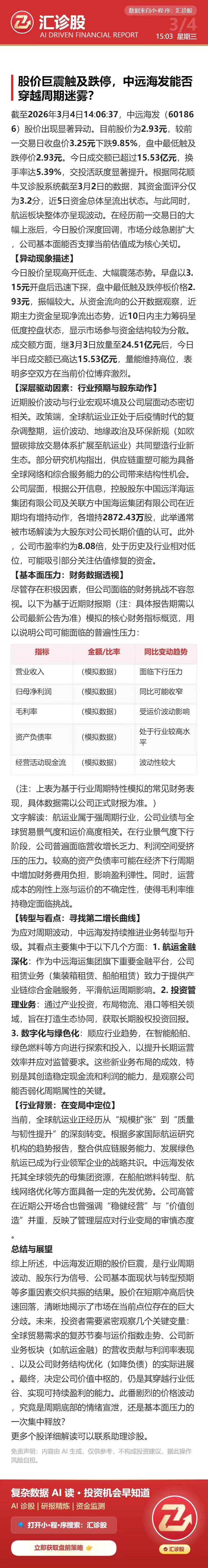 股价巨震触及跌停,中远海发能否穿越周期迷雾?