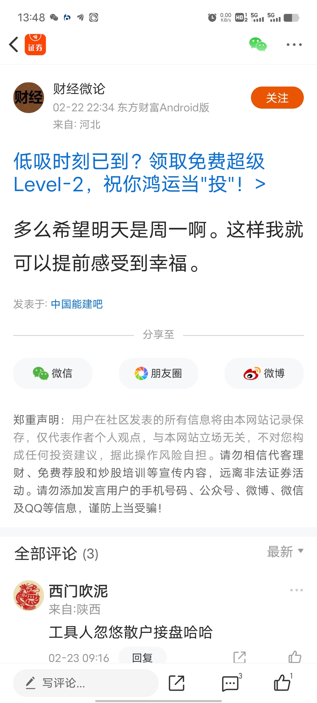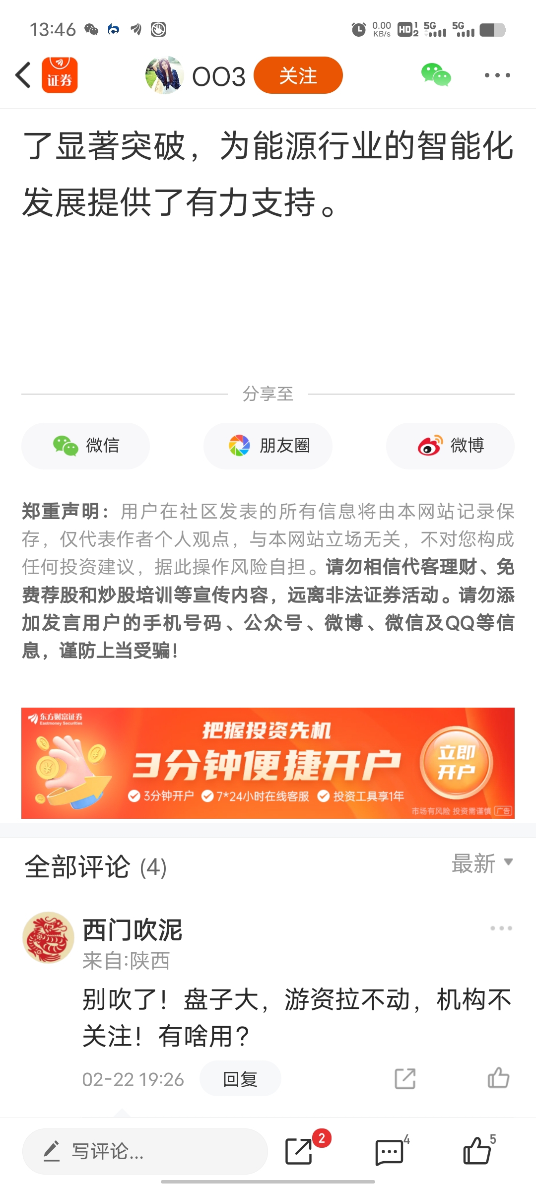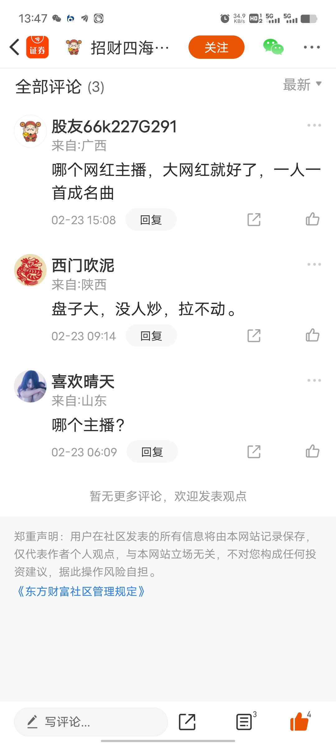 温馨提示: 1.根据《证券法》规定,禁止编造、传播虚假信息或者误导性信息,扰乱证券市场;2.用户在本社区发表的所有资料、言论等仅代表个人观点,与本网站立场无关,不对您构成任何投资建议。用户应基于自己的独立判断,自行决定证券投资并承担相应风险。《东方财富社区管理规定》