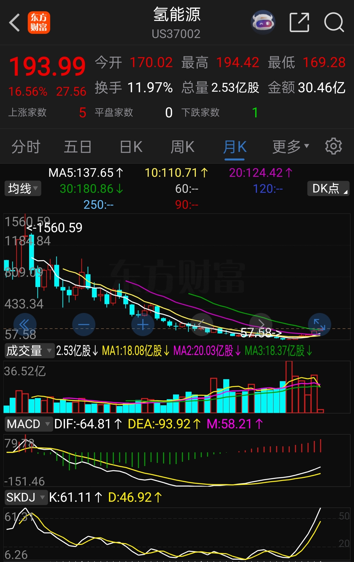 干一票两元股氢能源+储能