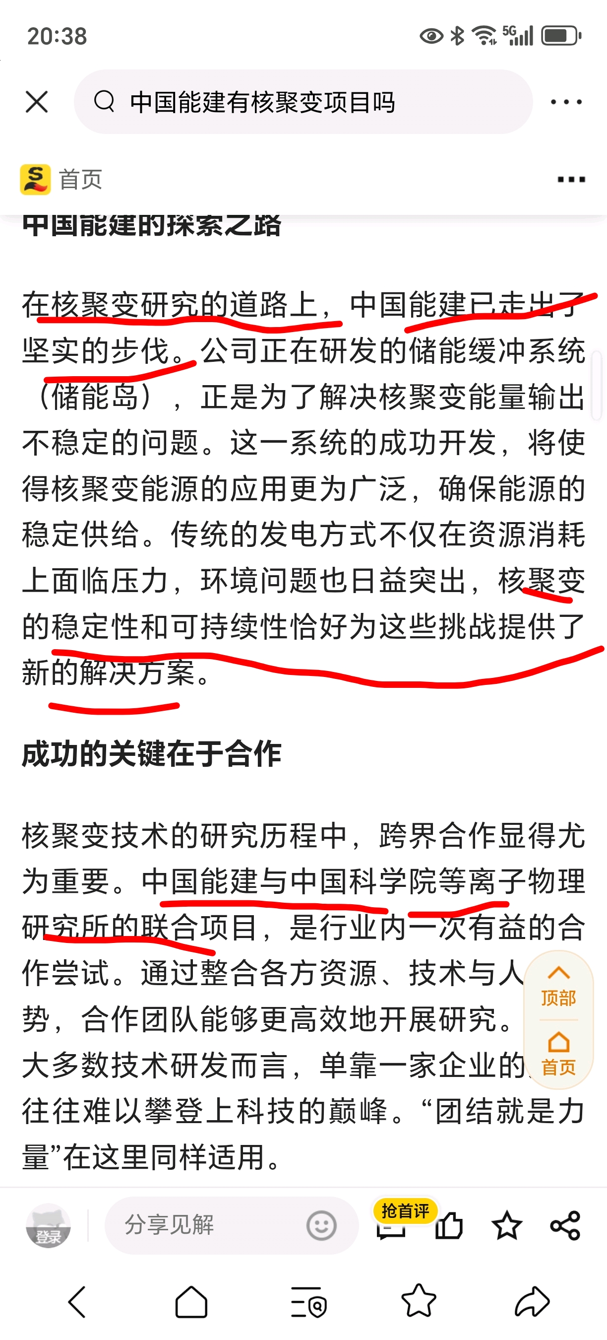 核聚变技术中国能建与中国科学院等离子物理研究所的联合项目。