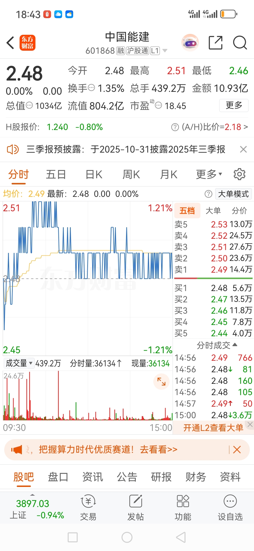 $中国能建(SH601868)$ 没有1万亿资金,能建涨不起来,看看多大的卖盘,永远卖不完