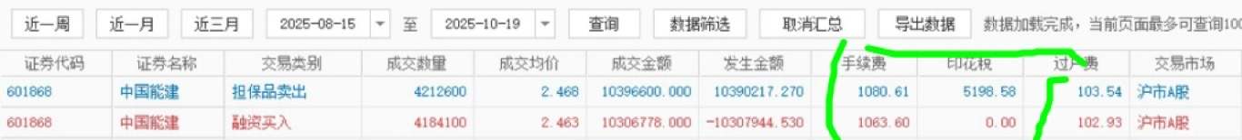 $中国能建(SH601868)$ 明天又可以开盘了,我为中国股市纳税做贡献真开心,为国家交金融钱很自豪,今天看了买入能建信用账户的最近两个月为国家贡献了 5000 印花税,为券商贡献了 3000 手续费 2000 融资利息,月均消费 5000+,也算是对得起国家,对得起能建的国家队,加油中国能建
