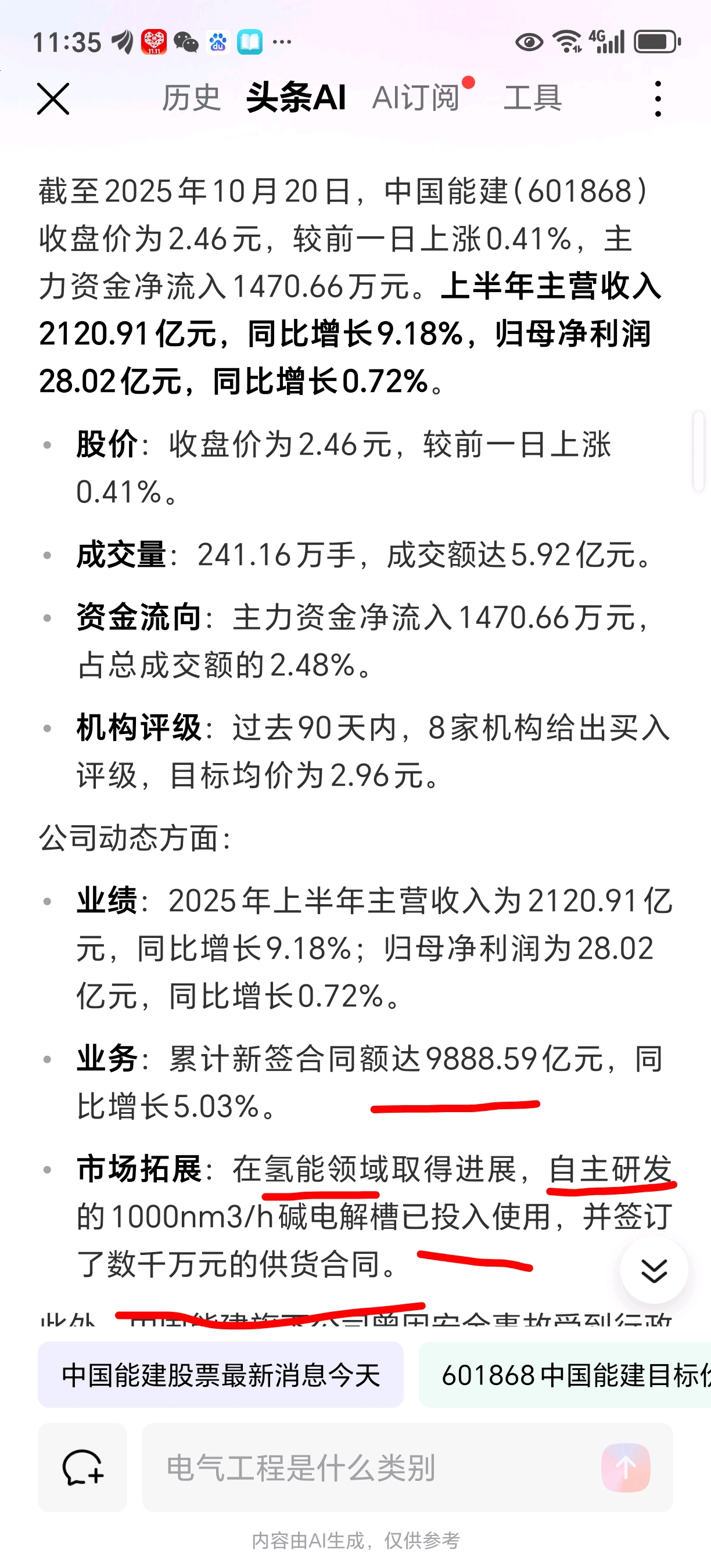 中国能建2025年订单高达9888.59亿元,氢自主研发年产5一10万吨,储能电芯自主研发年产30GWh,核聚变研发以达到运行稳定和持续性,特高压技术领先全球,并且特高压订单532亿。还有人工智能,算力等水电,核电等无数的等,中国能建算巨量科技库。科技研发高达1万3千多项有效成果专利