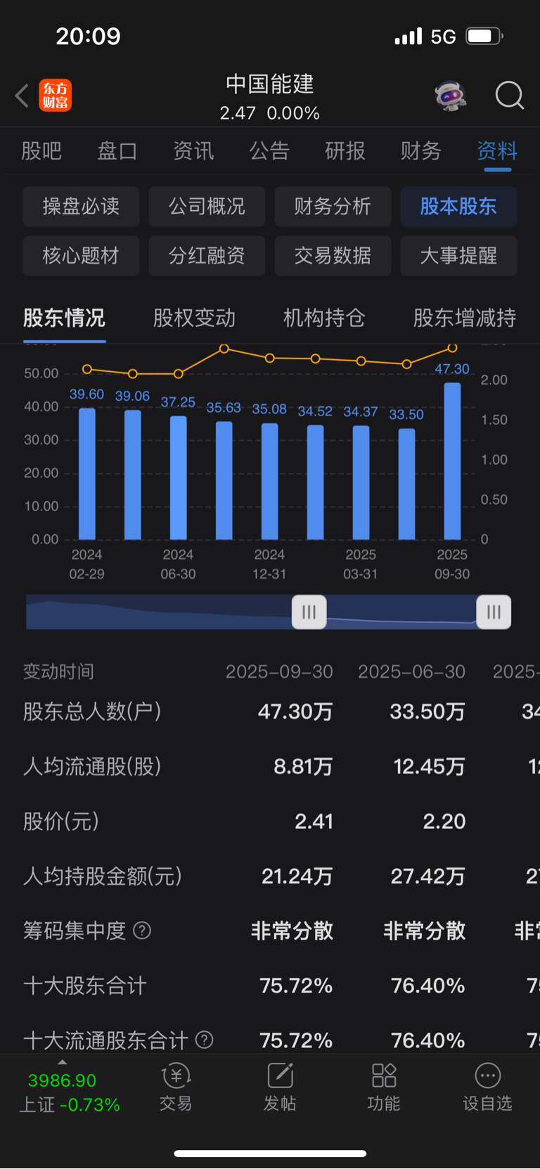 $中国能建(SH601868)$ 股东人数47万 涨了十多万什么情况