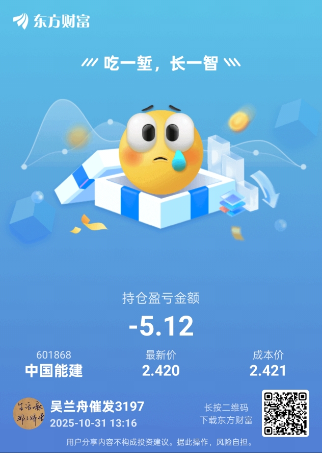 $中国能建(SH601868)$ 买了就下跌跌撞撞连滚带爬,乍办?