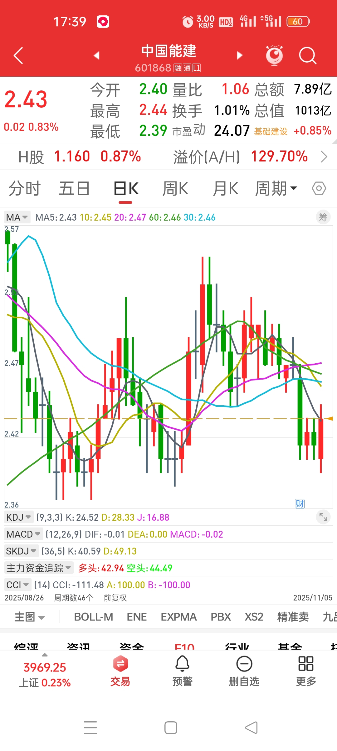 $中国能建(SH601868)$ 今天又错过了一次抄底机会,少赚了一个忆,跌到2.37一次,反弹到2.52,.回调2.38一次,反弹到2.55又调整,到这次2.39又来一次,这次应该到2.58高点开始调整!