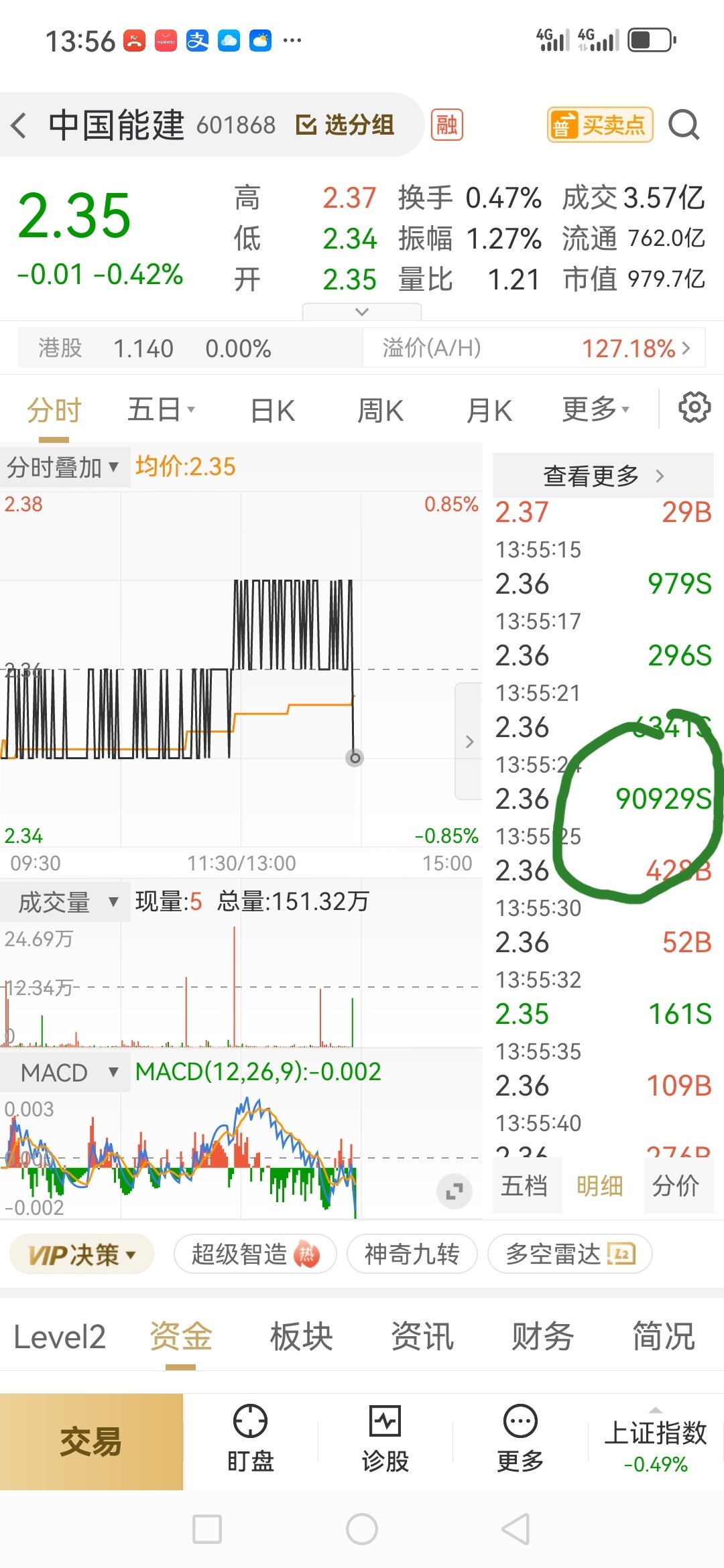 $中国能建(SH601868)$ 这个单子成交了,终于卖出去了,我对不起各位散户猪了,目前我坚持中………割肉卖出离场………造成股价波动,不要怪我,我还有900万手轰炸出来会跌停的,接下来这一段时间,我要全部卖出,每天卖出1000万股~1500万股,这样影响小一点,一个礼拜左右我就卖完了,谢谢大家配合