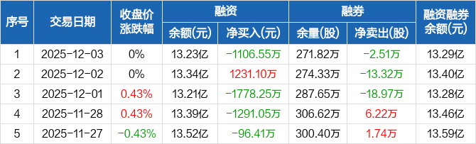 中国能建:融资净偿还1106.55万元,融资余额13.23亿元(12-03)