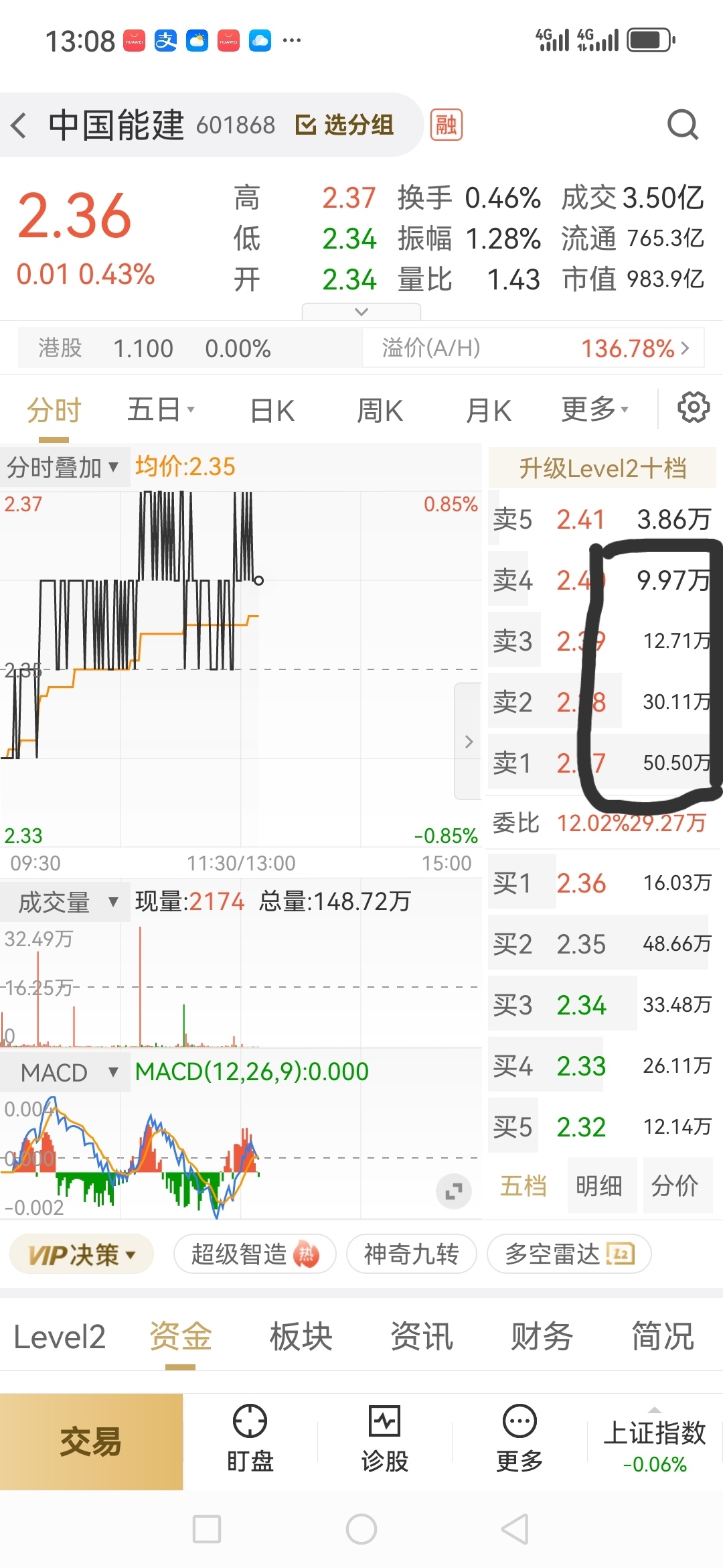 $中国能建(SH601868)$ 2.4亿元想套现,抛压很大………继续磨盘磨吧!