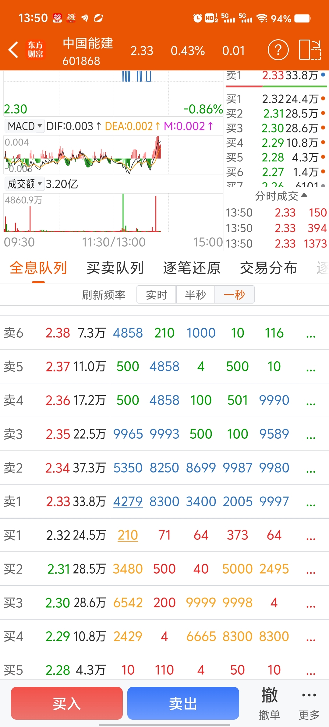 $中国能建(SH601868)$ 上下挂大单是啥意思?