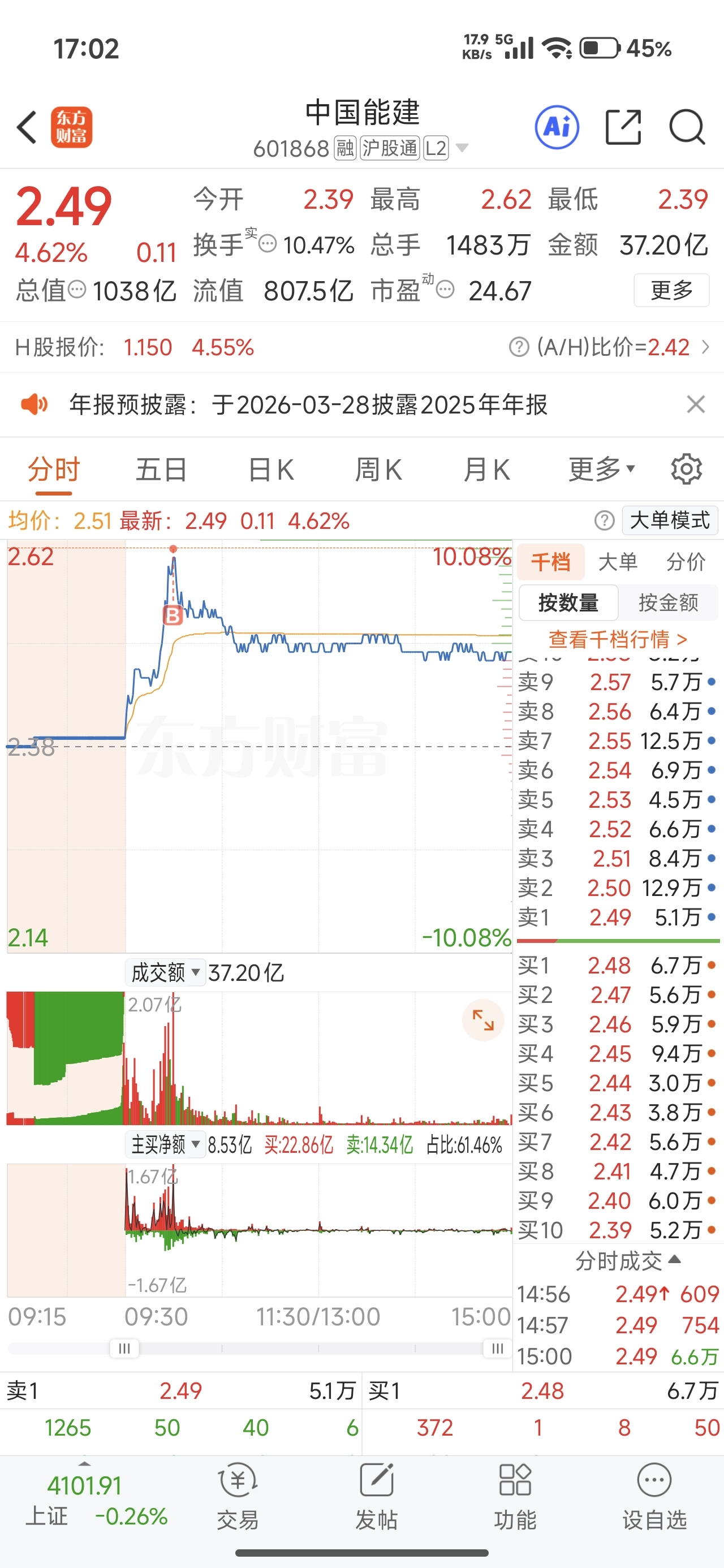 $中国能建(SH601868)$ 家人们,最高点买的, 多少天能解套?