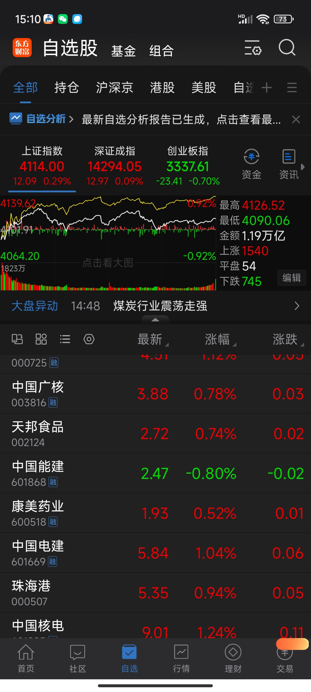 全部自选股就只有能建是绿色的唉