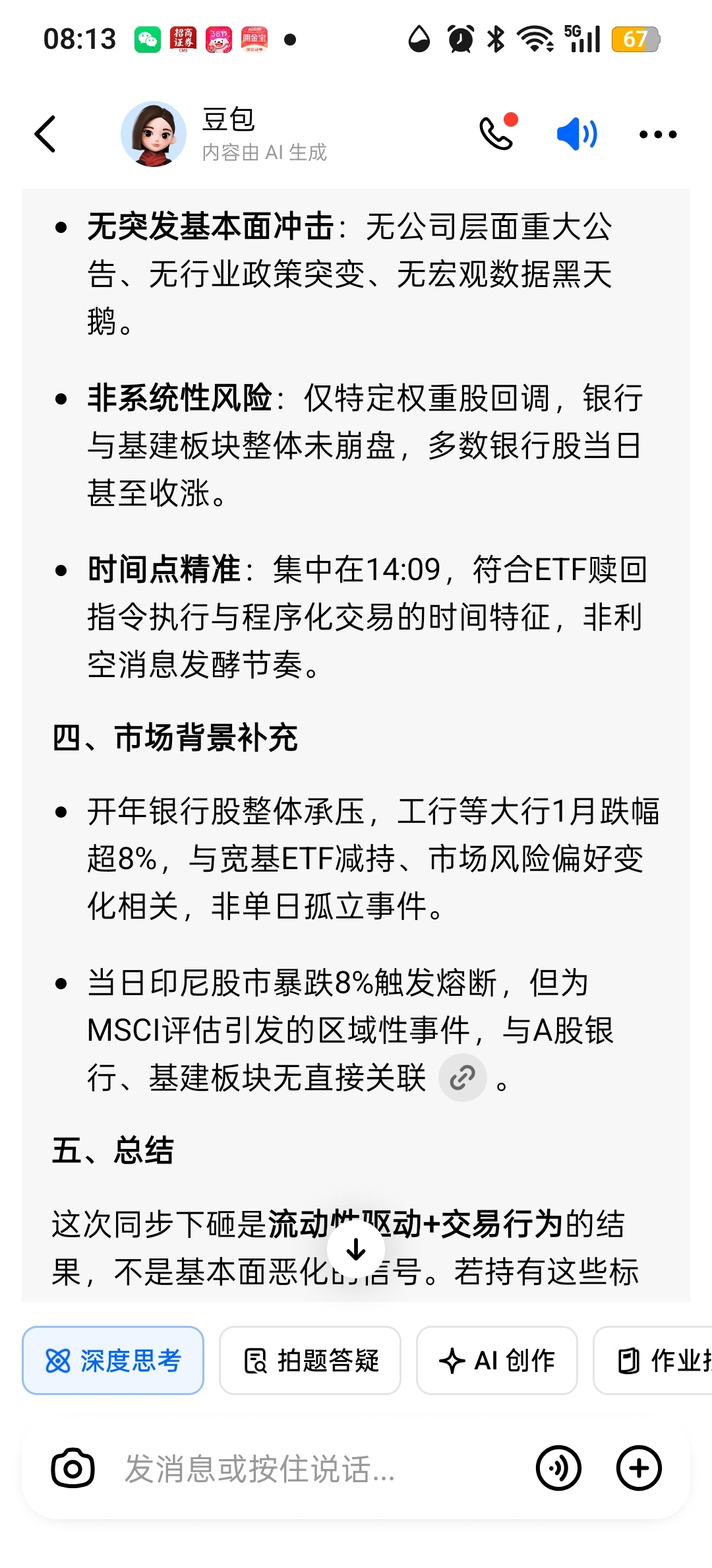 $中国能建(SH601868)$ 昨天下午2.09分中国光大银行,平安银行,中信银行,中国能建,中国电建的集体向下杀跌,主要是因为宽基减仓所至。