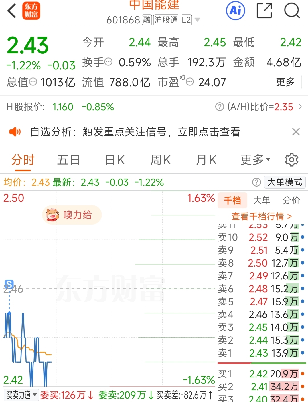 $中国能建(SH601868)$ 开盘直接割了2.3再买