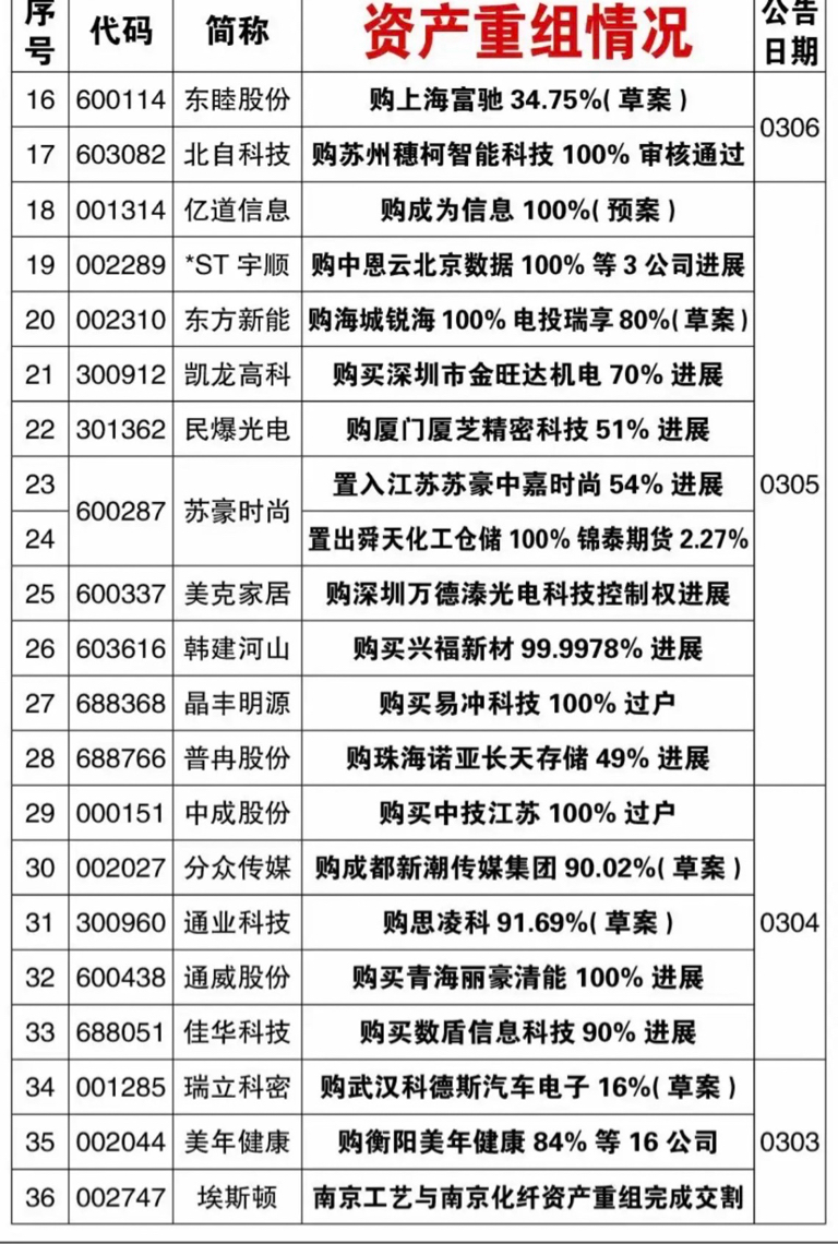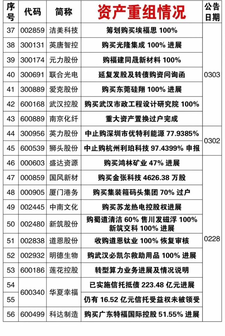 3.8周日本周82家公司公告资产重组!特别是那些科技题材的,可以跟踪观察。