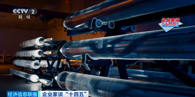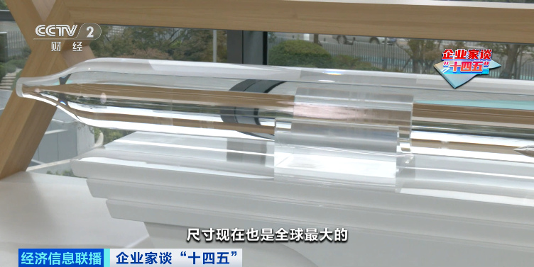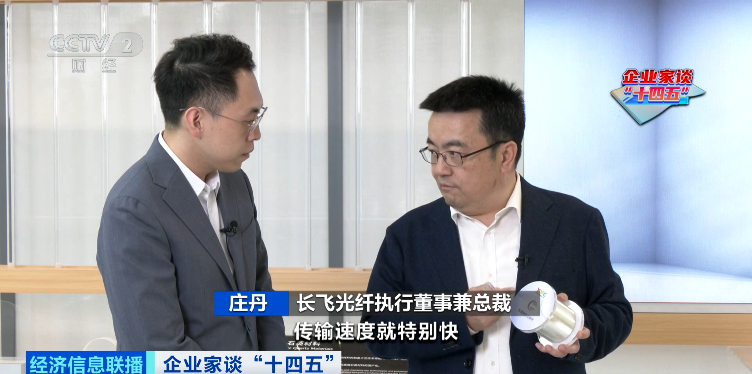 长飞光纤执行董事兼总裁庄丹:这根预制棒就是“十四五”期间,我们研发做出来的。现在也是全球最大的尺寸,可以拉将近1万公里的光纤,都是通过自主创新实现的。