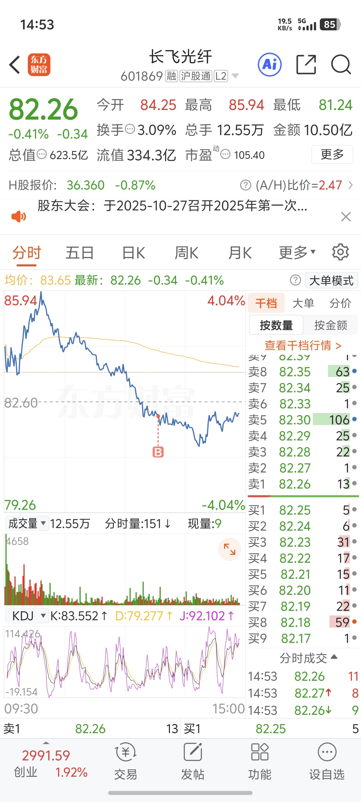 $长飞光纤(SH601869)$ 不管对错加仓了。成本做到83.4来了。看明天能不能赚钱吧。最近太难了。跌了半个月
