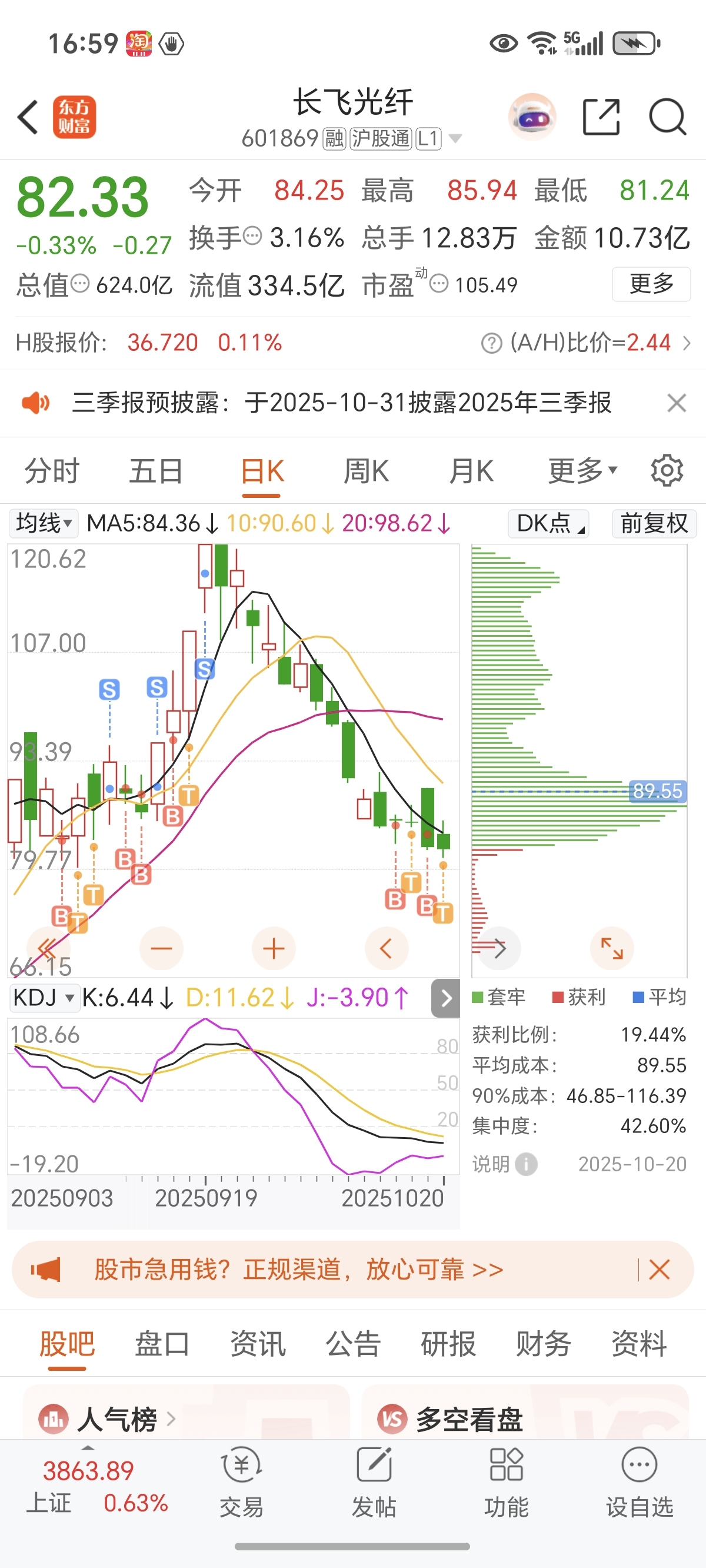 $长飞光纤(SH601869)$ 会起来不?逃顶成功又进来了。别把我挂山顶了。